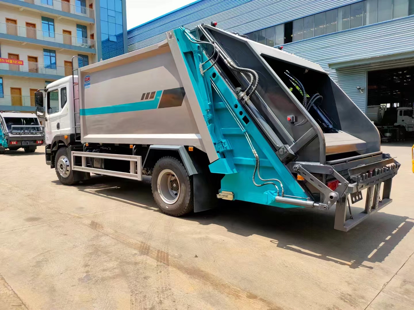 上裝配置 箱體容積14立方,采用邊四底五高強(qiáng)板制作,填裝器外置滑板油缸結(jié)構(gòu),機(jī)器人自動(dòng)焊,電泳工藝涂裝,威森博樂多路閥,皖液油泵,填裝器外置滑板油缸結(jié)構(gòu),尾部翻轉(zhuǎn)結(jié)構(gòu)可掛120/240L垃圾桶,選裝全密封斗/三角斗。