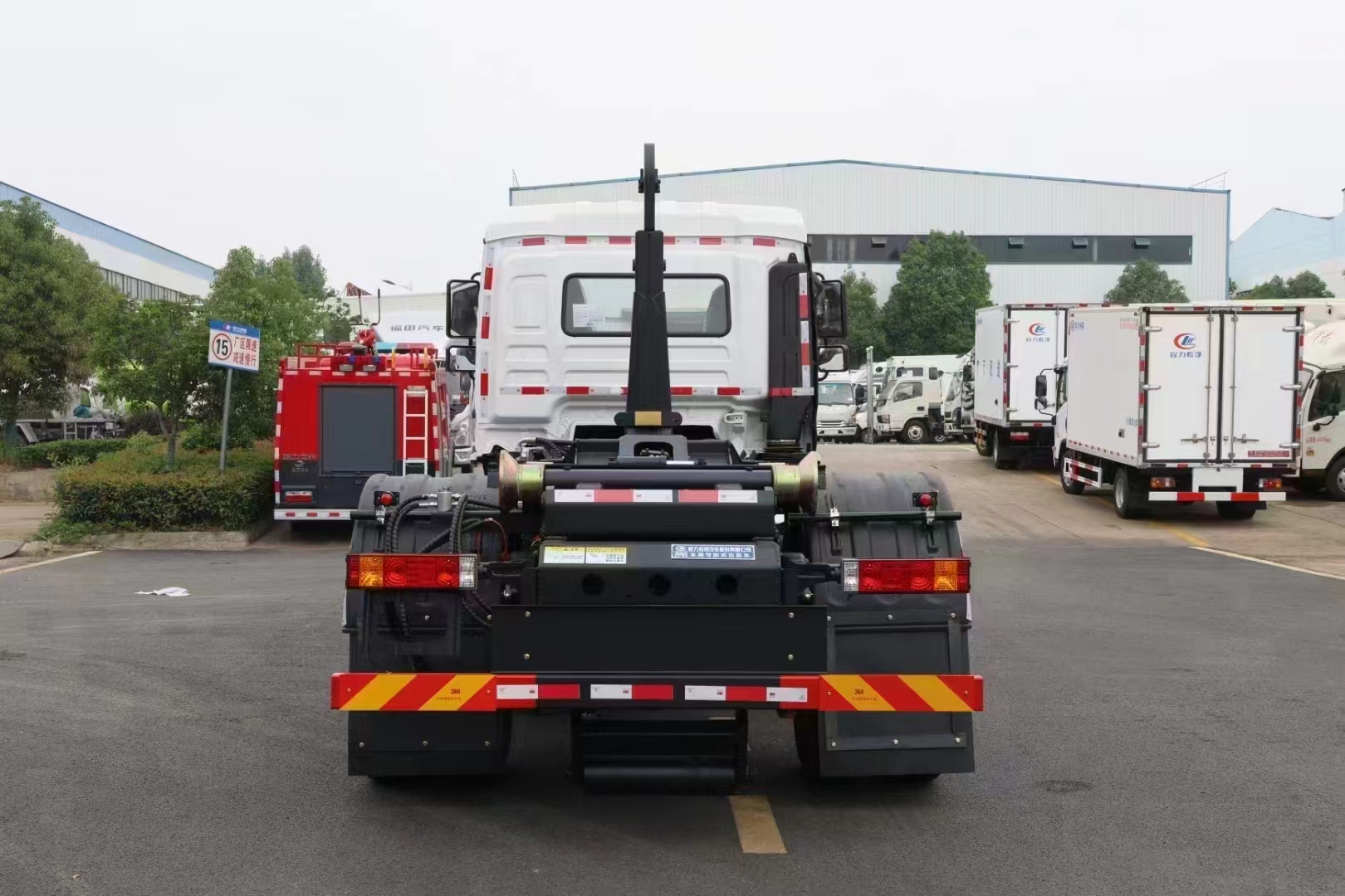 | 上裝配置 | 配套14-16方勾臂垃圾箱或移動站,主勾臂由高強度板材制作,雙油缸控制,伸縮式主臂,加強型上裝結(jié)構(gòu),液壓支腿,橫向鎖緊,品牌多路閥,進口柱塞泵,標配室內(nèi)外操作(帶遙控),防誤操作,帶平衡閥,液壓鎖。 | ||