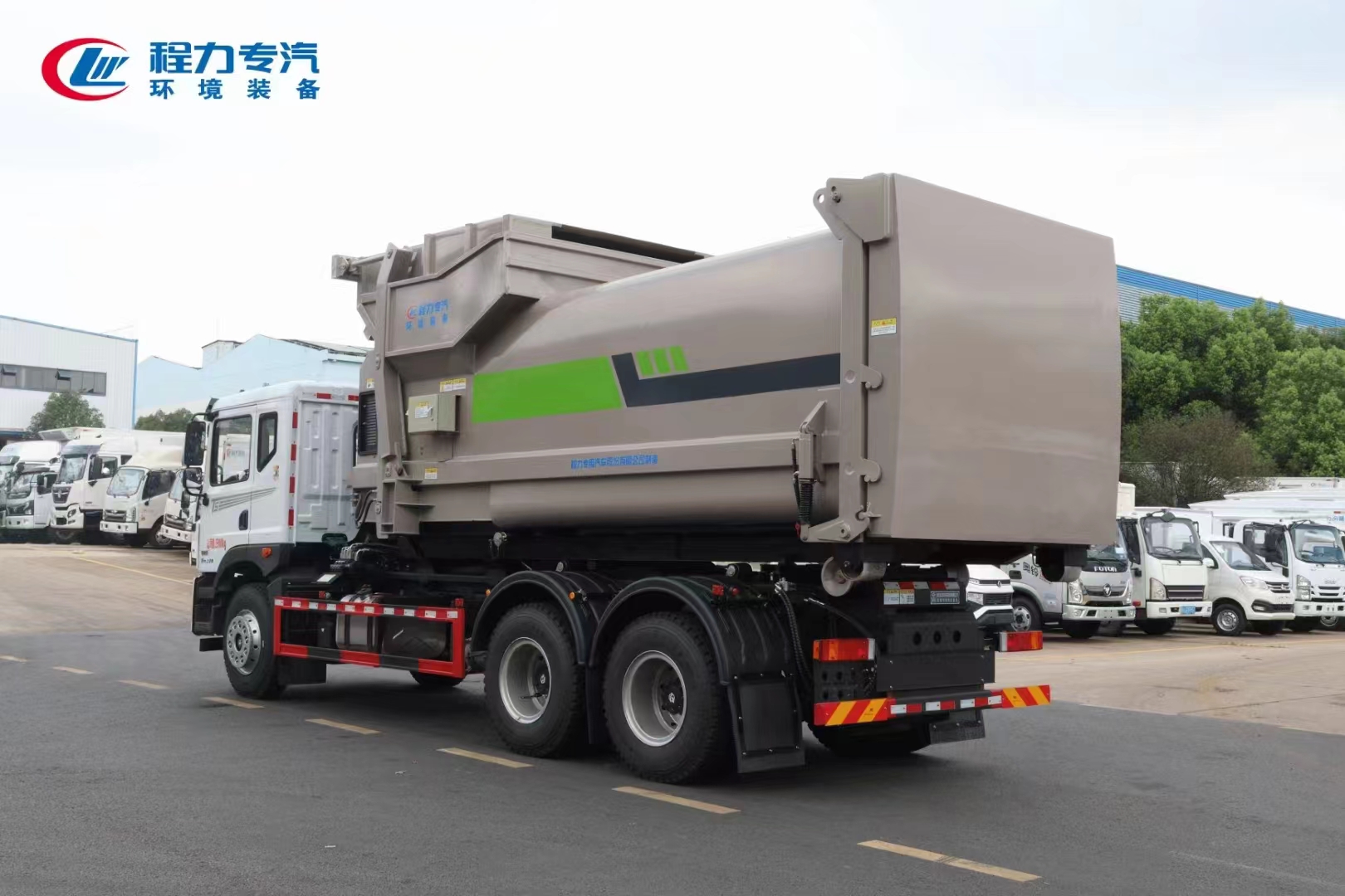程力專汽東風(fēng)華神后雙橋勾臂垃圾車+移動(dòng)壓縮箱
