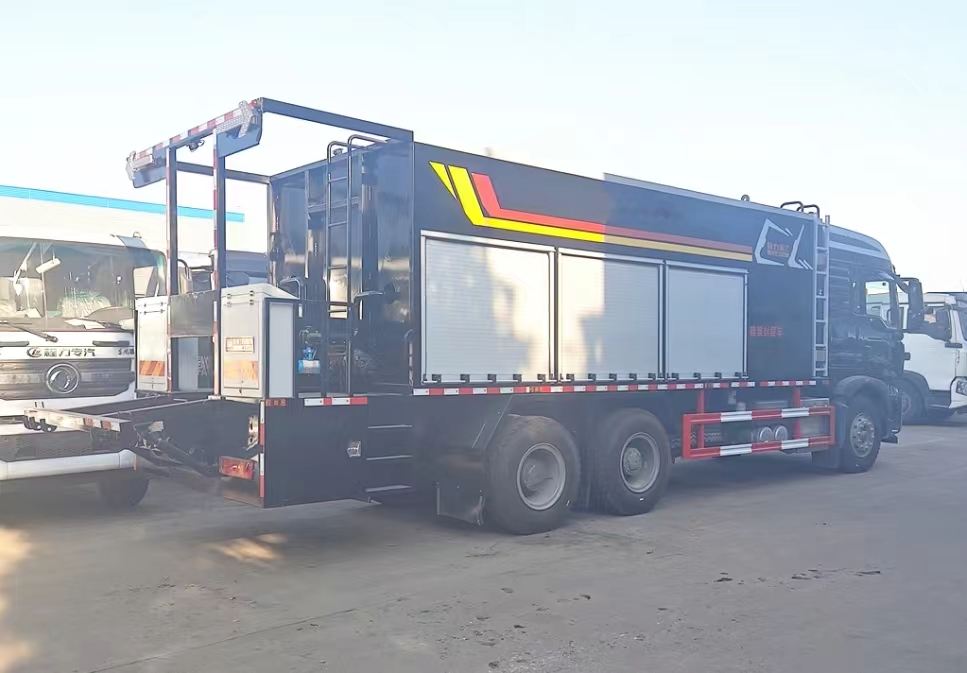 | 產品概況 | CLW5251TFCZ6型稀漿封層車型稀漿封層車可拌和攤鋪普通稀漿封層材料,該產品主要面對高等級公路的微表處和下封層以及普通二、三級公路和市政道路的下封層施工,屬于稀漿封層車中的中高端產品CLW5251TFCZ6型稀漿封層車的主要特點:1. 后置遠程速度控制裝置:該裝置使得施工更加流暢,施工時車速由后臺操作人員根據攤鋪相中混合料的情況隨時調整車速,減少了在施工嘈雜環境中因操作手與司機的不順暢溝通而產生的施工質量問題。2.乳化瀝青箱及水箱均采用耐腐蝕復合材料處理:大大減小了水及乳化瀝青對箱體的腐蝕,延長了使用壽命。3.全液壓驅動,各系統獨立控制:無動力擾動現象,確保個系統的平穩運轉。4.無死角的雙軸強力攪拌箱:保證拌合料的均勻性,并且清洗無死角。5. 控制系統:系統采用人機化集中控制,操作人員可以在后平臺上完成所有操作。優選工程機械專用控制器,手動、自動切換,智能顯示流量,操作方便、可調。6. 全數字的計量系統。采用流量計實時顯示,能精確的計量瀝青、水以及添加劑的用量。7. 底盤帶電動門窗、空調、臥鋪、ABS;操作方便、駕乘舒適。8.折疊式鋁合金爬梯,既美觀,又方便。9.鋁合金卷簾門,施工時打開,不遮擋駕駛員視線和影響兩側車輛通行。10. 雙層料倉擋板,防止漏料,保證施工質量。 | ||