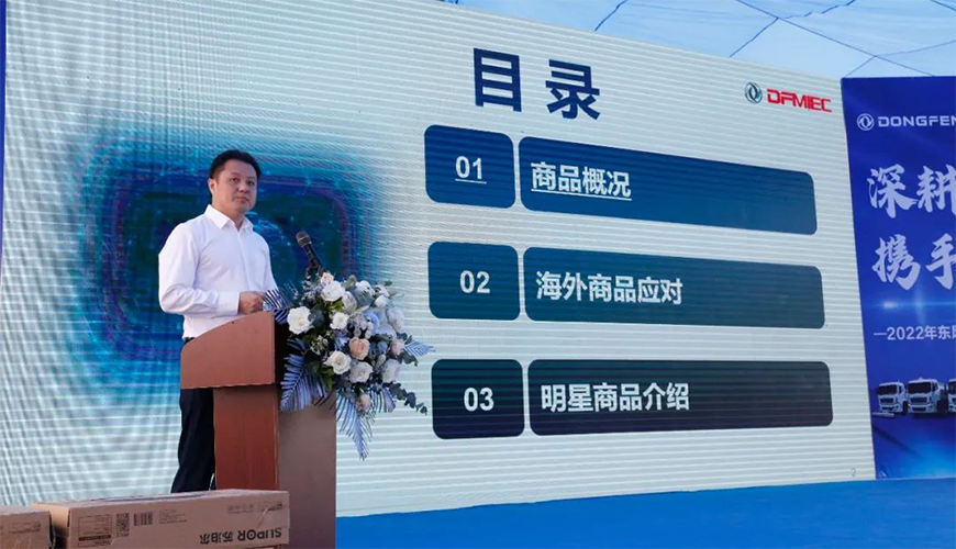 楊濤助理表示,中國(guó)東風(fēng)汽車(chē)工業(yè)出口有限公司是東風(fēng)汽車(chē)集團(tuán)有限公司的二級(jí)單位,是一家專(zhuān)業(yè)從事東風(fēng)集團(tuán)汽車(chē)出口、全球供應(yīng)鏈服務(wù)、工業(yè)投資的外貿(mào)公司。2021年?yáng)|風(fēng)的海外事業(yè)取得了亮眼的成績(jī),海外出口車(chē)輛(含成套散件)15.4萬(wàn)輛,同比增長(zhǎng)了1.2倍,創(chuàng)造了歷史最高紀(jì)錄;2022年將沖刺挑戰(zhàn)20萬(wàn)輛的銷(xiāo)售目標(biāo),借此推薦會(huì)的機(jī)遇,希望程力和隨州的銷(xiāo)售經(jīng)理,能夠搭上東風(fēng)海外事業(yè)發(fā)展的快速列車(chē),共創(chuàng)新業(yè)績(jī)新輝煌。
