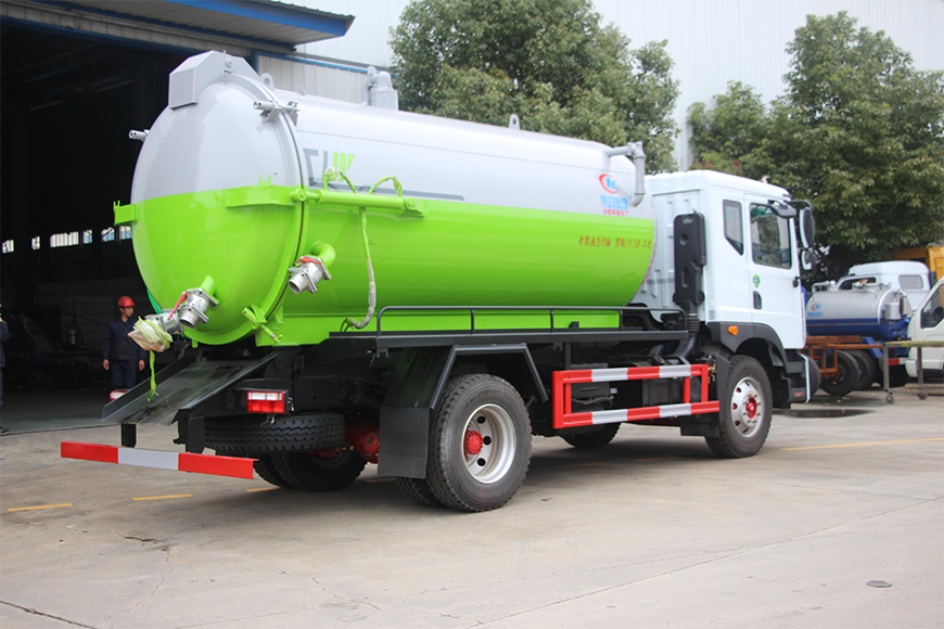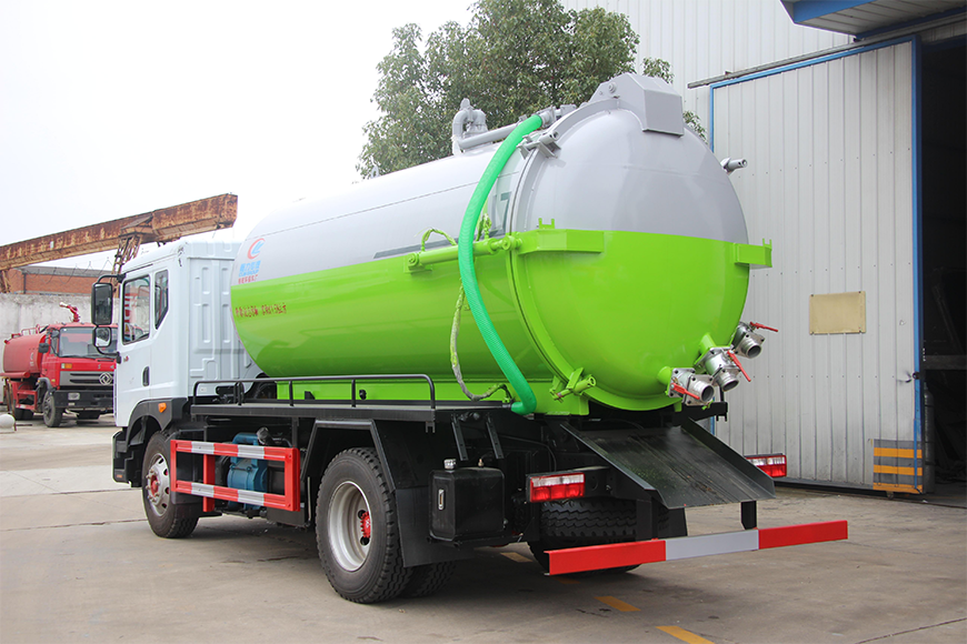 | 上裝配置 | 污罐:Q235武鋼6MM厚碳鋼板,標(biāo)配采用億豐SK-12水循環(huán)泵。防溢閥,視糞管,配一根8米吸污管,罐體封頭一次壓鑄成型、罐體帶舉升,后蓋為液壓開啟。罐內(nèi)污物可通過后蓋直接傾倒,具有真空度高、噸位大、效率高、用途更廣泛的特點。 | ||