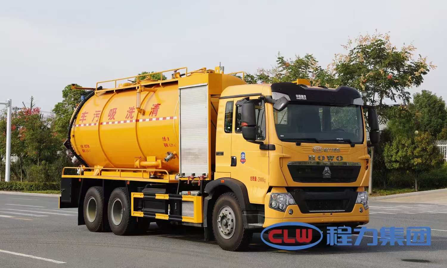 國六重汽豪沃后雙橋22立方帶副發清洗吸污車